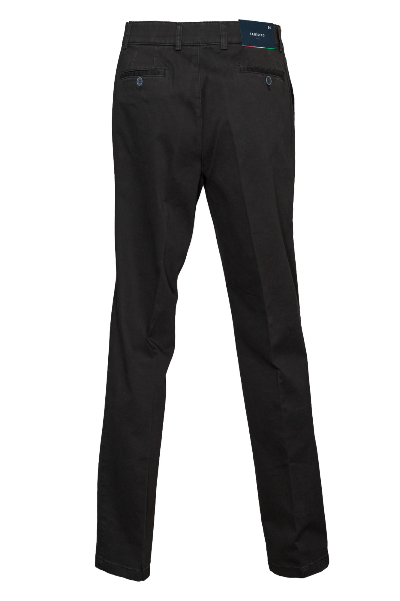• Брюки полуприлегающего силуэта с классической посадкой. Модель выполнена из сертифицированной хлопковой ткани с добавлением эластана. Плотный растяжимый материал, не стесняет движений, сохраняет форму, практически не мнется. Гульфик на молнии, пояс застегивается на две пуговицы и крючок. Боковые карманы расположены наклонно. Задние карманы с застежкой на пуговицы. Брюки прекрасно сочетаются с сорочками и трикотажем. Отлично подходят для повседневной носки.