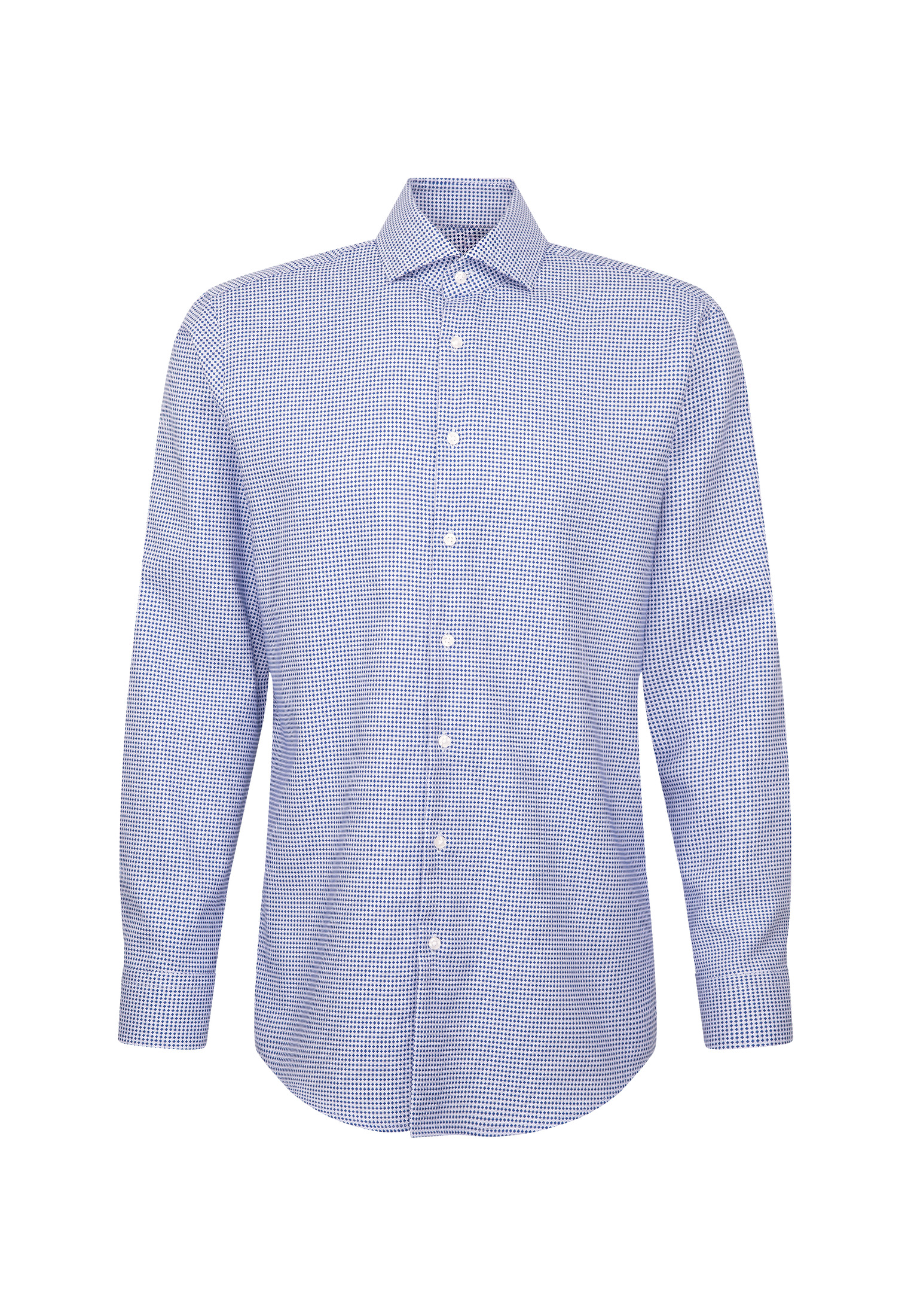 • Приталенный силуэт, Классический воротник, Классический (на пуговице), Принт, Синий