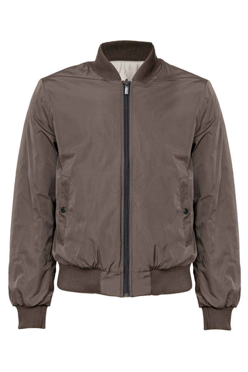 • Двусторонний бомбер MADZERINI выполнен из ткани с водоотталкивающей пропиткой. Модель из гладкого текстиля с одной стороны и из стеганого текстиля с внутренней стороны. Прямой силуэт. Застежка на молнии. Трикотажный воротник- стойка. Трикотажные манжеты на рукавах, трикотажная эластичная резинка по низу куртки, тонкий слой искусственного утеплителя. На первой стороне: два боковых кармана на кнопке. На второй стороне: два боковых кармана на молнии. Прекрасно сочетается с джинсами и трикотажем. Незаменимая вещь в мужском гардеробе, отлично подходит для повседневной носки.